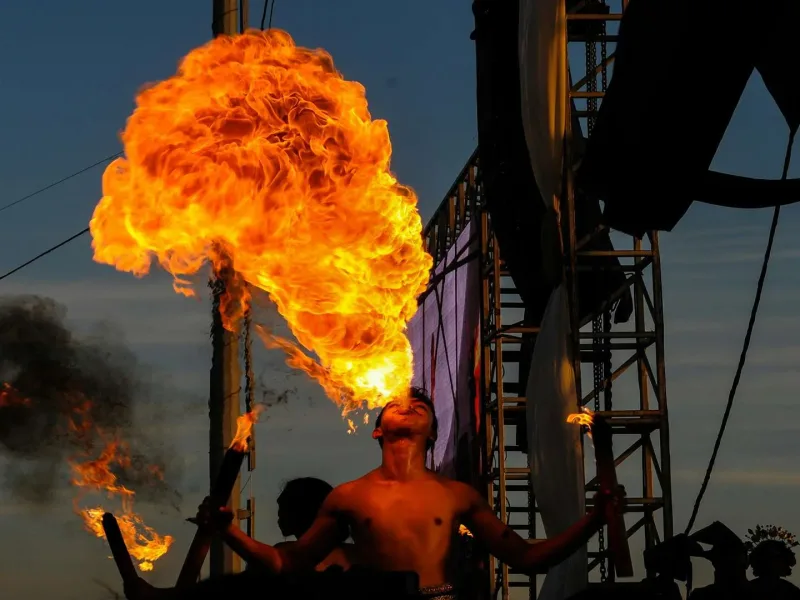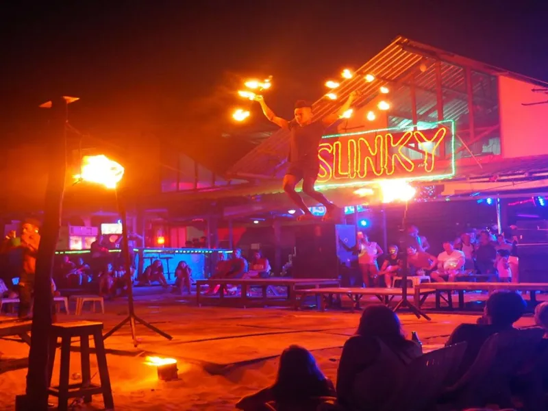 • Beach party, bar visits and fire show on the beach