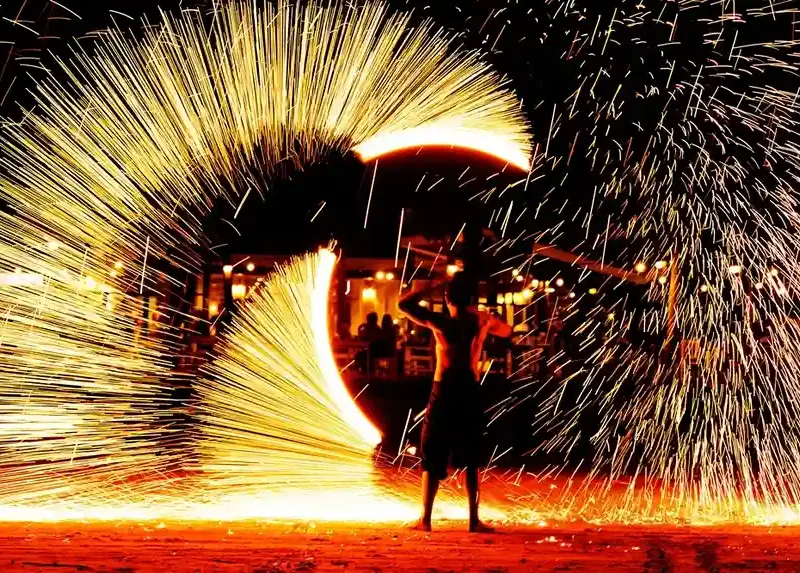 Party on the beach, fireworks show.
