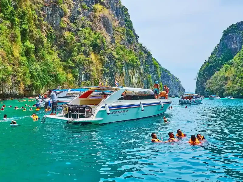 Your two-day island journey begins early in the morning with a smooth transfer to Royal Phuket Marina, one of the most beautiful piers in Phuket. The sea is calm, the air is fresh, and the energy of the day feels perfect. You meet your guide, enjoy a light breakfast and board a modern speedboat equipped with Wi-Fi, towels and everything you need for comfort. As the boat leaves the marina, you watch the coastline fade and the open sea bloom into shades of blue 🌊✨. Your first destination is Bamboo Island, a paradise that looks like it was painted by nature itself. White sand stretches in every direction. The water is transparent enough to see fish gliding near the shore. You can swim, walk, take incredible pictures or simply relax under palm trees. Sometimes wild varans wander around the island — they’re friendly and add a unique touch to the tropical atmosphere 🦎🌴. Next, the speedboat heads to Maya Bay. Even though it’s one of Thailand’s most famous beaches, arriving in the morning makes the place feel serene. The cliffs rise like tall guardians around the bay, the water glitters under the sunlight and the entire scene feels cinematic. Every photo looks flawless here 🌅🏝️. The journey continues to Pile Lagoon, a natural emerald pool surrounded by limestone walls. You jump into warm water, float peacefully and feel weightless. It’s a moment of pure harmony and silence. After that, the boat glides past Viking Cave, known for its ancient drawings and the local tradition of gathering swallow nests. Then comes snorkelling — one of the highlights of the tour. You swim above coral reefs that glow with colour. Schools of fish surround you. The underwater world is bright, gentle and unbelievably clear. Even beginners fall in love with snorkelling here 🐠💛. By midday, you arrive at Phi Phi Don, check into your hotel, enjoy lunch and take a short rest. When evening comes, the island transforms. Fire shows light the beach. Music fills the air. People dance, laugh and enjoy the night under the stars. There’s even Thai boxing where guests can participate and win fun prizes. It’s energetic, lively and perfectly balanced with the serenity of the day 🔥🎶. You wake up on the island to the sound of gentle waves. After breakfast, you enjoy free time — explore the village, relax on the beach or shop for souvenirs. Then the boat takes you back to sea for snorkelling near coral reefs, watching monkeys at Monkey Beach, and finally relaxing on the hidden paradise of Rang Yai Island. The water here is calm, warm and ideal for a slow, peaceful finish to your adventure 🌞🌺. By the time your boat returns to Phuket, you’re carrying two days of magic — sunsets, parties, clear water, exotic wildlife, incredible landscapes and memories that stay with you long after the trip ends. Highlights of the Phi Phi Bambu 2-Day Tour 🌅🏝️ Bamboo Island’s white-sand beaches and turquoise water Maya Bay’s iconic movie landscape Swimming in Pile Lagoon’s emerald waters Viking Cave, coral reefs and colourful marine life Overnight stay on Phi Phi Don with nightlife and fire shows Snorkelling, Monkey Beach and Rang Yai Island Perfect mix of adventure, comfort and relaxation What’s Included in This 2-Day All-Inclusive Experience 🧳🌴 Your package covers everything you need for a perfect getaway: Speedboat transfers both days Hotel on Phi Phi Don with breakfast Lunch, dinner and water Snorkelling equipment and life jackets Towels, raincoats and Wi-Fi on board Professional English-speaking guide Safety crew and medical insurance Just bring your swimsuit, camera and a good mood — the rest is taken care of. Best Travelers for the Phi Phi Bambu Tour 👥💙 Couples wanting romance and island sunsets Friends seeking adventure and nightlife Solo travelers looking for a lively, safe island escape Photography lovers Anyone wanting more than a standard one-day trip Travelers who want real memories, not just quick stops Why Travelers Love This 2-Day Phi Phi Experience 💖🌊 Because two days give you something a single day never can — connection. You feel the island. You live the sunrise. You enjoy the nightlife. You swim, explore, relax, laugh and fall in love with Thailand’s nature. You experience everything at a comfortable pace instead of rushing. And since this tour includes everything — hotel, food, guides, equipment — it’s one of the best value overnight experiences in Phuket. Spots are limited and sell out fast during high season 🗓️🔥. Ready for Two Days in Paradise? 🌴✨ Wake up by the sea. Dance on the sand. Swim in turquoise water. Book your Phi Phi Bambu 2-Day All-Inclusive Tour — the island magic is waiting for you ❤️🏝️