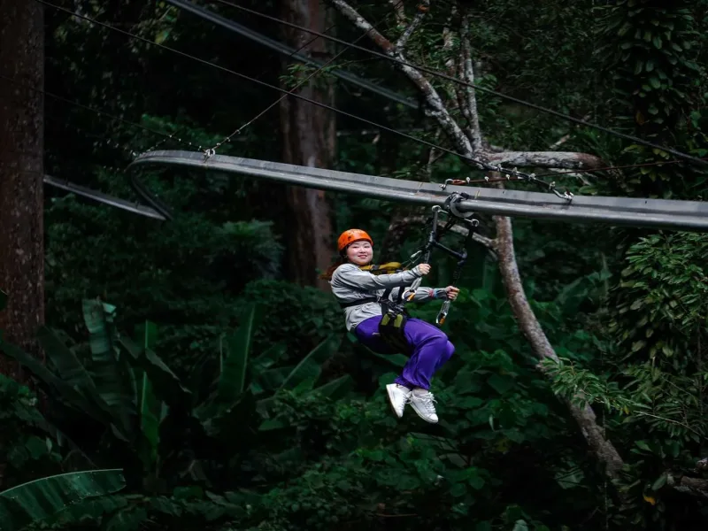 In season 2025, embark on a thrilling adventure at Hanuman World Extreme Park in Phuket. This unique park offers three levels of fun for beginners and adrenaline junkies alike. You can walk across suspension bridges in the tropical jungle, fly on thrilling ziplines and experience the Roller Zipline, an 800 metre long high-speed monorail ride.