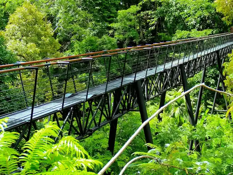 Suspension Bridges and Skywalk Start your journey with a walk across the bridges amidst the dense tropics. You can enjoy jungle views from up to 40 metres high and take stunning photos.