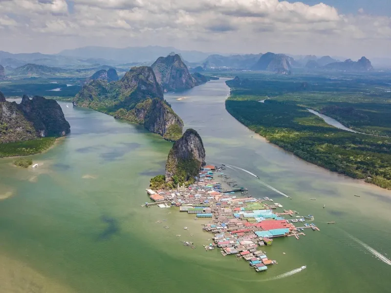 Visit to James Bond Island (Khao Ping Kan) overlooking Tapu Island and the sea nomad market