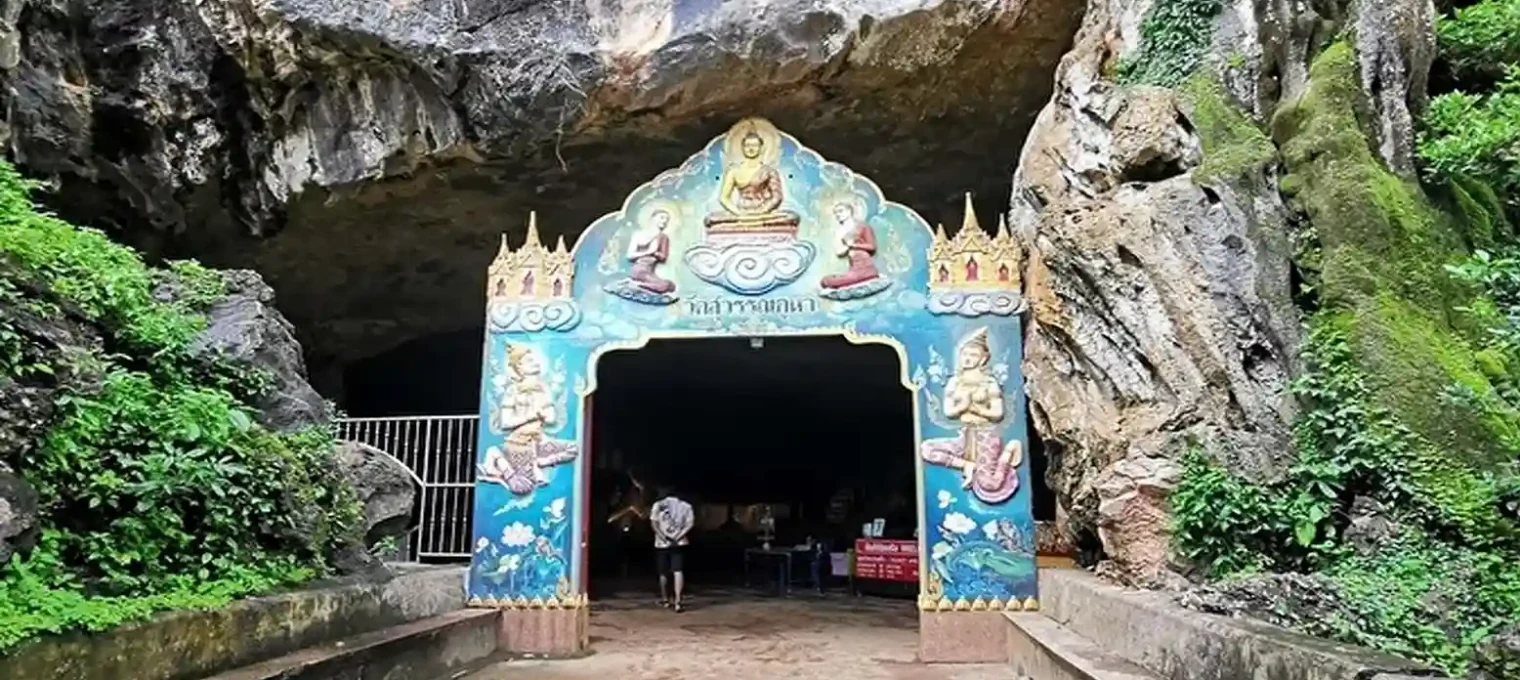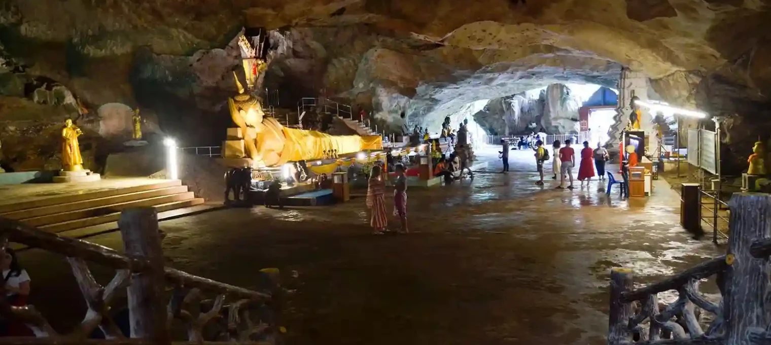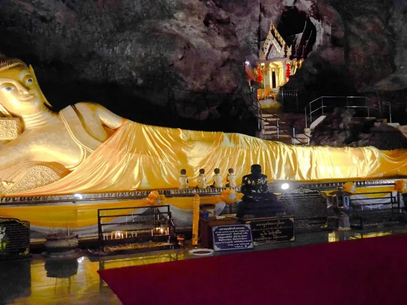 Следом — пещерный храм Ват Суван Куха. Вы попадёте в пространство тишины и покоя, где в центре пещеры лежит золотая статуя Будды, а по пути вас будут встречать дружелюбные макаки. Неподалёку — статуя Чёрного монаха, место силы и поклонения среди местных жителей.