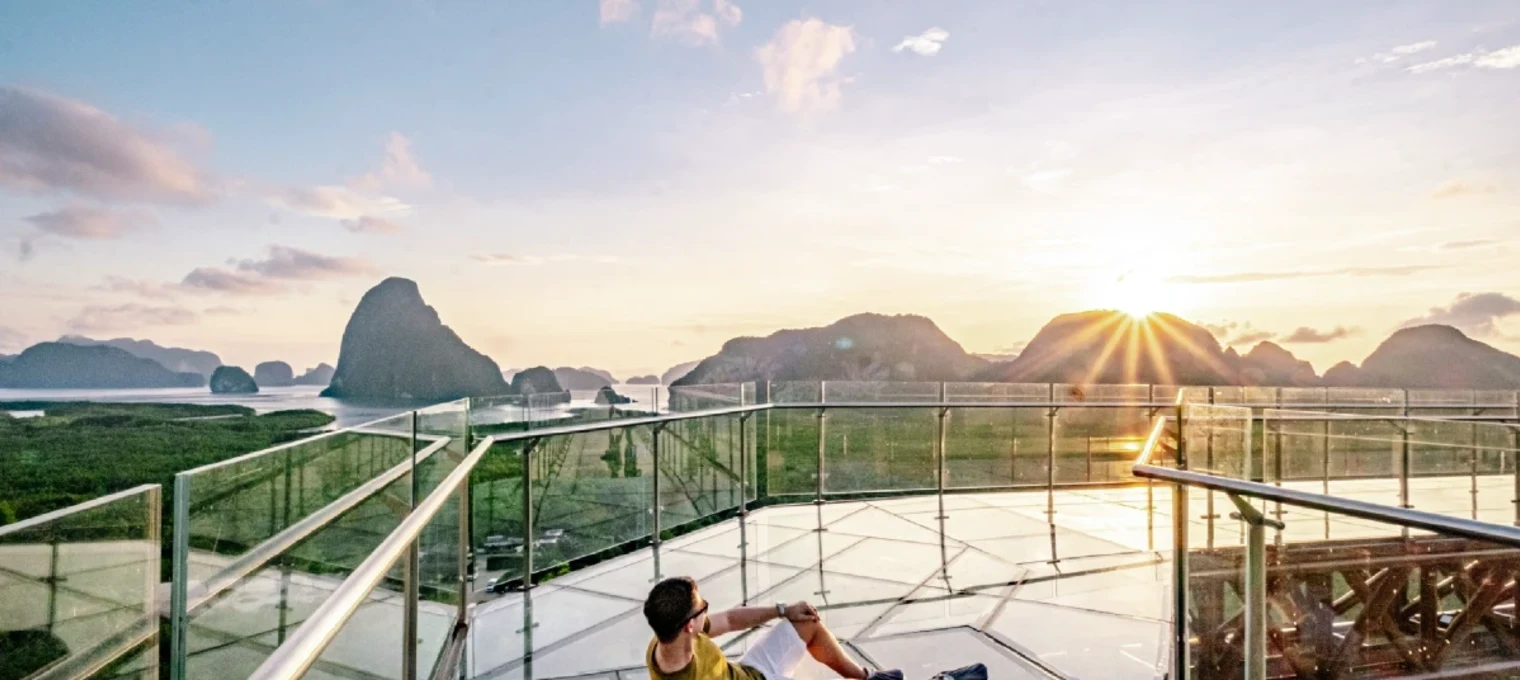 Готовы увидеть Пханг Нга с самой захватывающей высоты? Тогда этот тур для вас! 🌉 Путешествие начинается с подъёма на стеклянный мост на Самет Нанг Ши, откуда открывается головокружительный вид на залив Пханг Нга — пейзаж, напоминающий фантастический мир Пандоры или бухту Халонг.