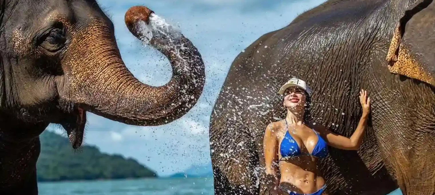 Обед вы проведёте в плавучей деревне морских цыган, отведав свежайших крабов, кальмаров и креветок. После этого — встреча со слонами: в программе не просто катание, а целое СПА с купанием и душем со слоном 🐘